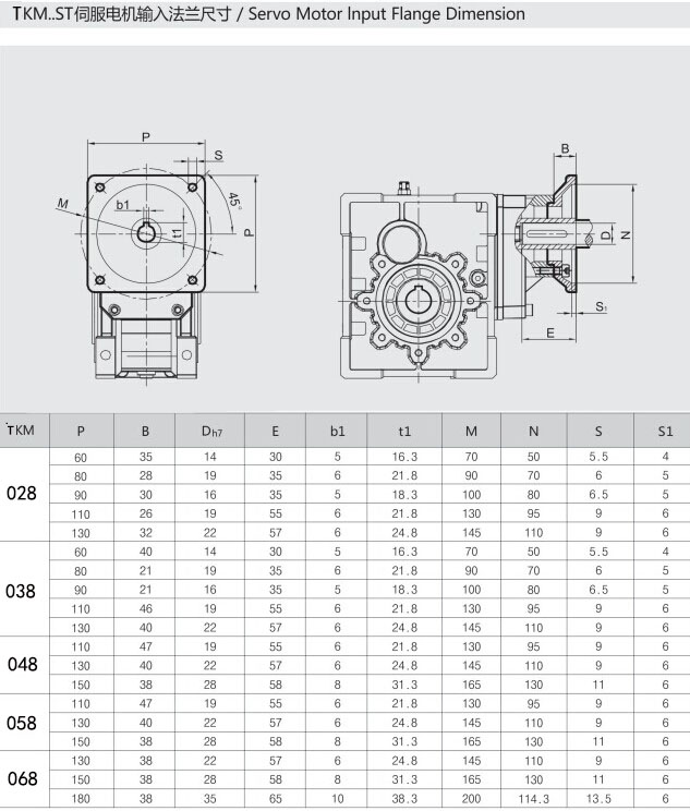 7.TKM系列雙曲面減速機(jī)安裝尺寸與NMRV系列蝸輪蝸桿減速器完全兼容(TKM28與TNRV050部分尺寸不同);